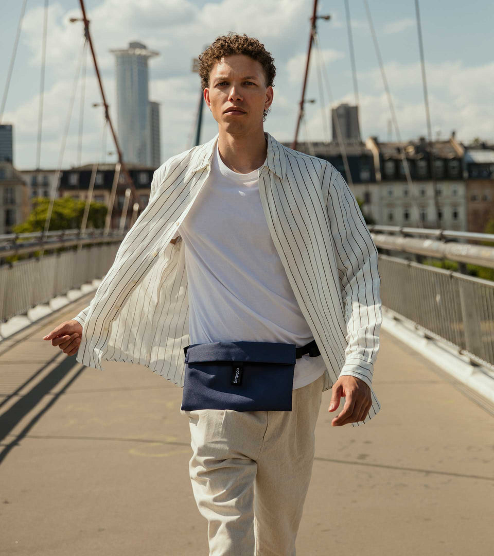 There’s a carabiner clip for your keys, two inner pockets, and our classic multifunctional strap — all the discrete and practical details you’d expect from a Notabag. And, of course, the bag and strap materials are 100% recycled. Isn’t that just what we do with plastic bottles nowadays?