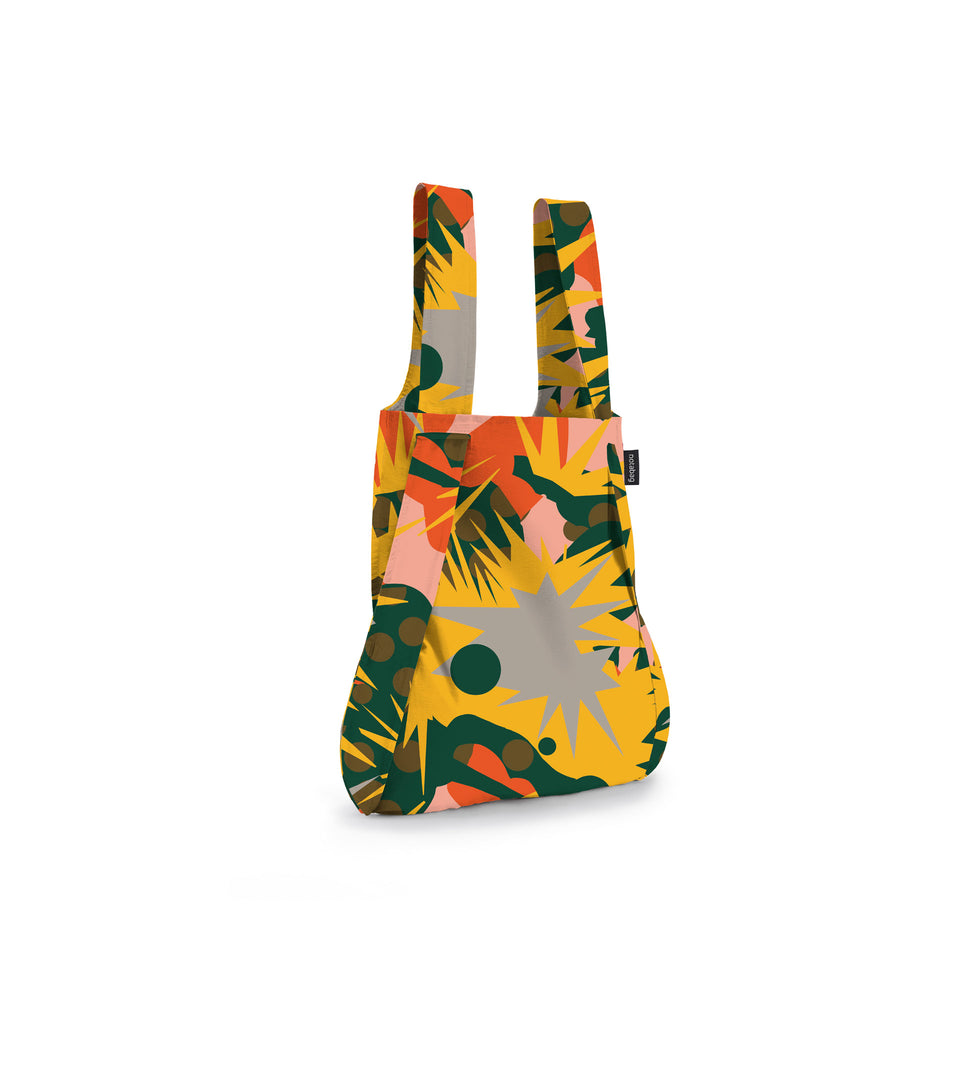 Notabag is the smart combination of a bag and a backpack. It transforms with a single pull on the straps, so you can put it on your back and free your hands. Inside the bag, there is an attached pocket where you can keep your wallet or your keys. When the bag is not in use, it folds into that pocket and becomes a hand-sized pouch.