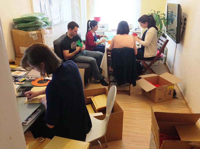 During this campaign, he almost sold 2500 bags. He realized that from now on he can live and breathe the Notabag dream, so he turned his living room into a small DIY logistic center. Together with his wife and friends, they threw a packaging party to fulfill the Kickstarter campaigns orders – it was his all-time favorite party.
